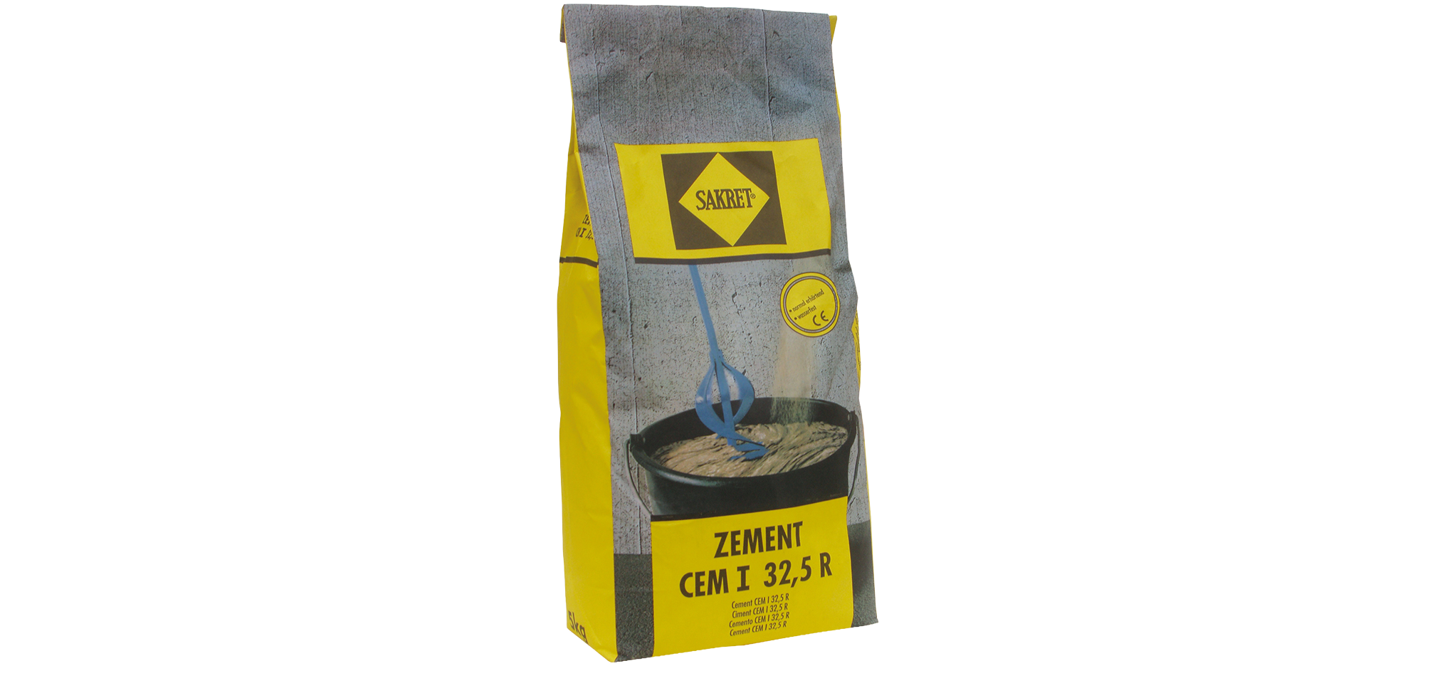 Mineraal bindmiddel van de cementvastheidsklasse CEM I 32,5 R voor de aanmaak van mortel, pleister, beton en zandcement dekvloeren e.d. door toevoeging van zand, grind, kalk, water en meer.
