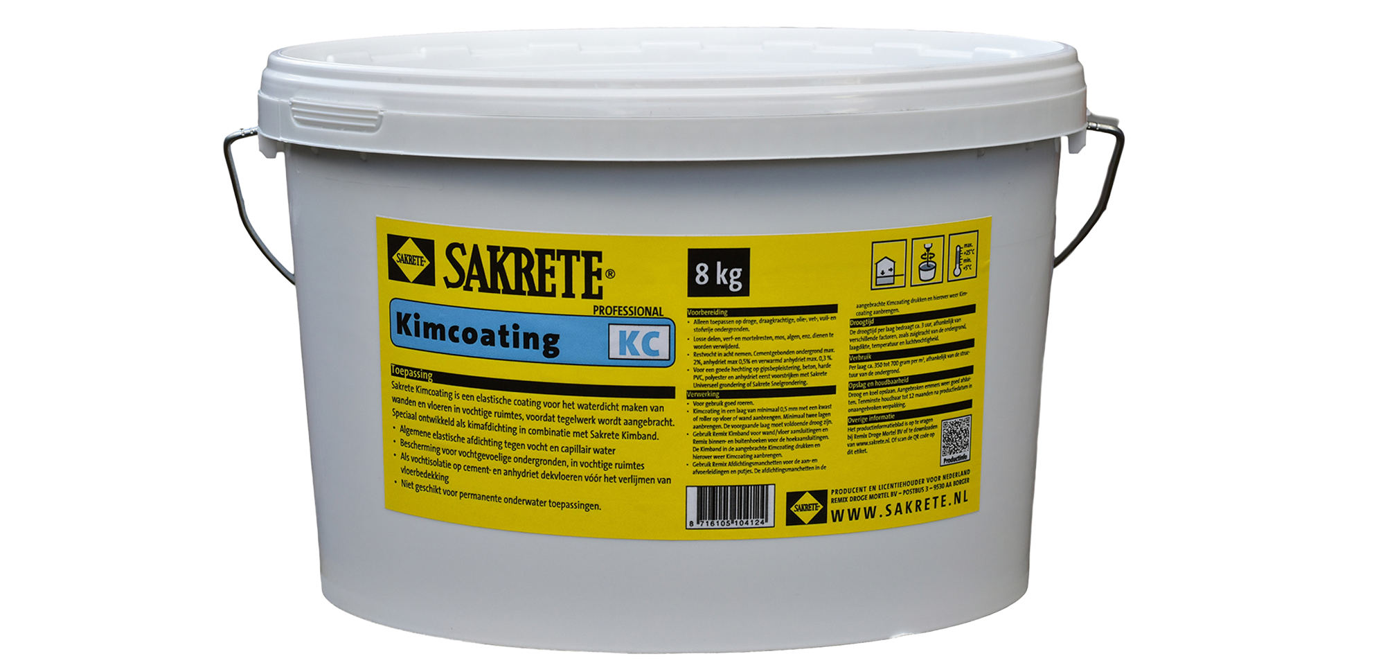 Sakrete Kimcoating is een elastische coating voor het waterdicht maken van wanden en vloeren in vochtige ruimtes, voordat tegelwerk wordt aangebracht.