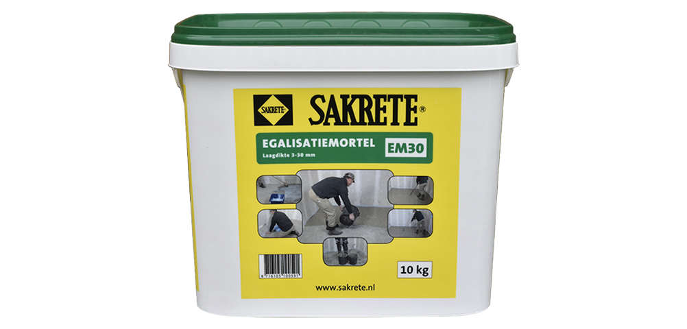 Sakrete Egalisatiemortel EM30 is een fabrieksmatig vervaardigde gebruiksklare droge egalisatiemortel (egaline) op cementbasis conform EN 13813.